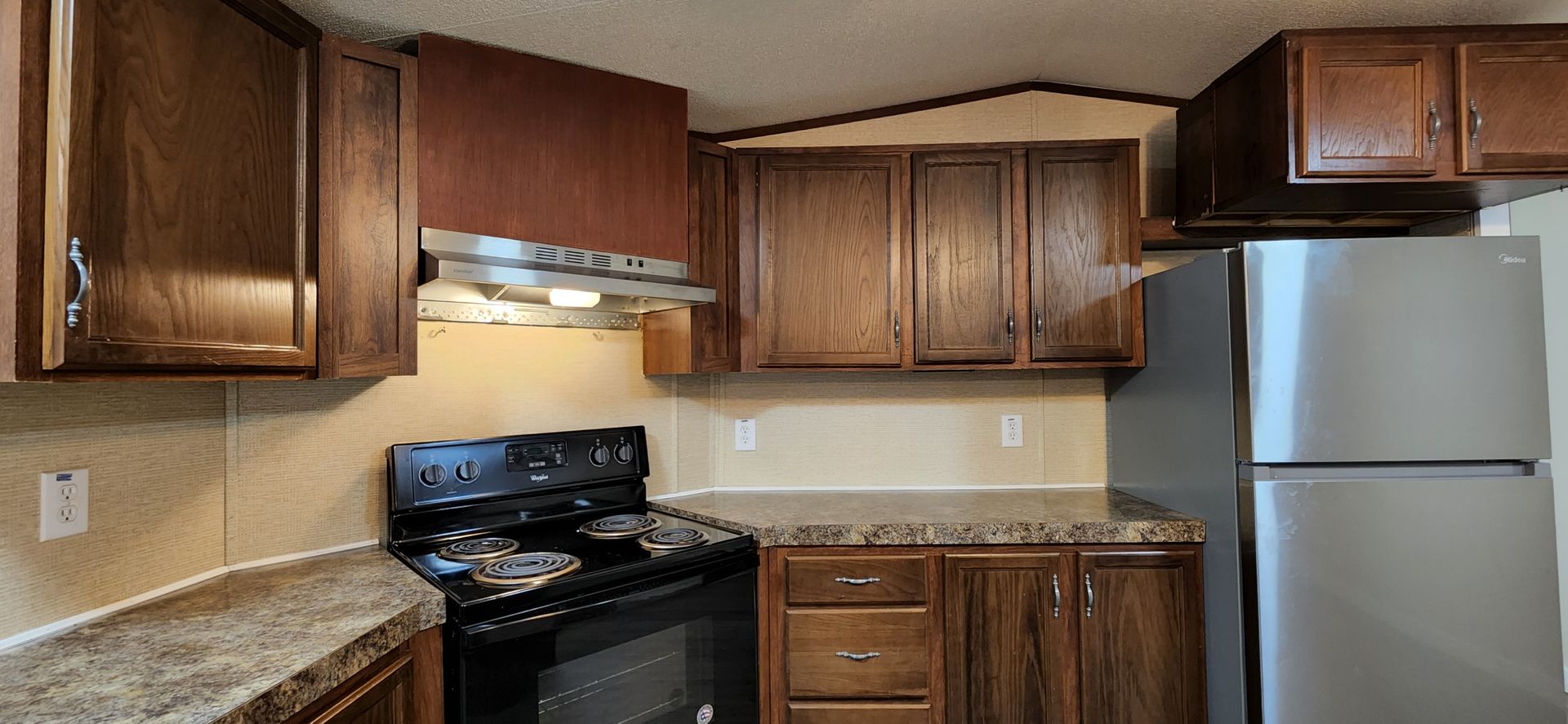 Upgraded kitchen with stainless steel appliances.